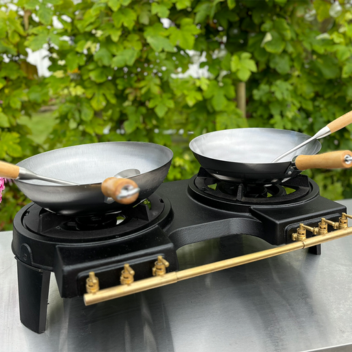 Cast iron Gas Burner with 3 Taps and Wokpan. The HOT WOK Original 7 kW gas stove made of cast iron puts out 7.0 kW making it perfectly suited for w...